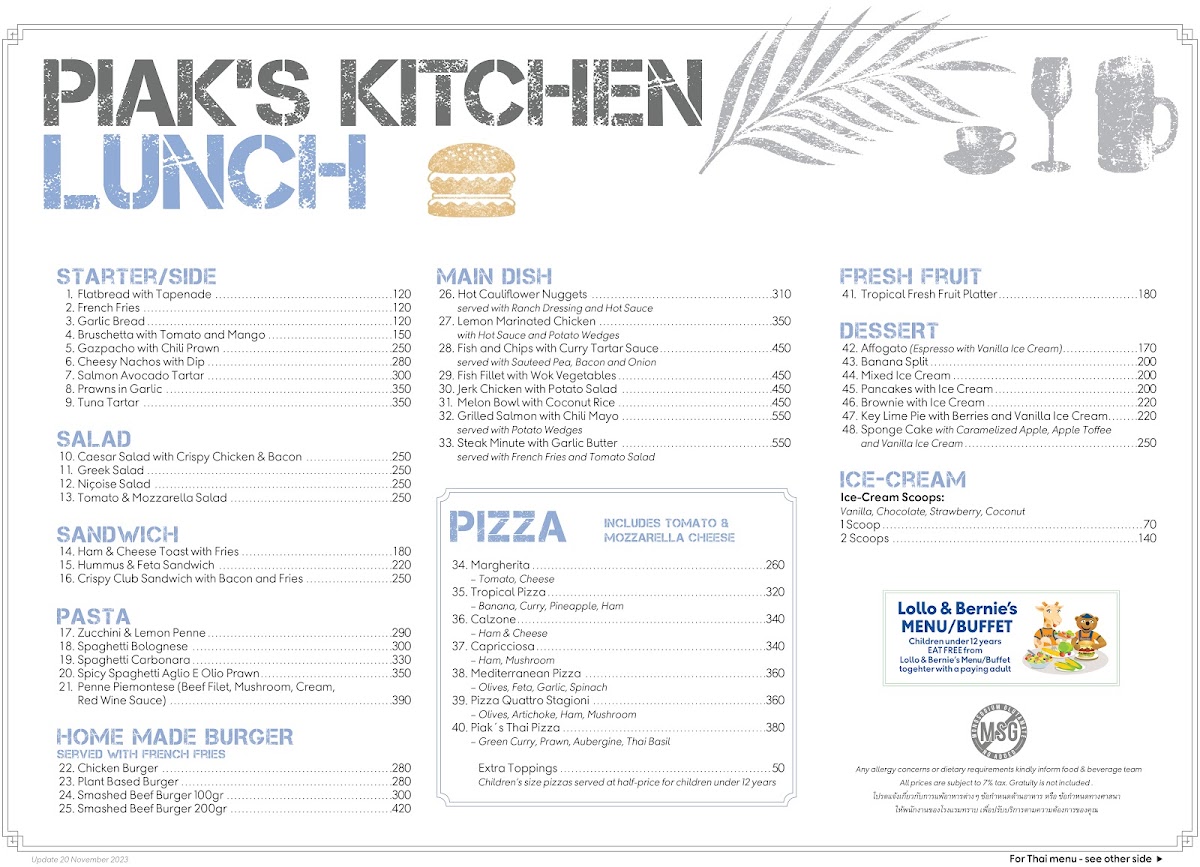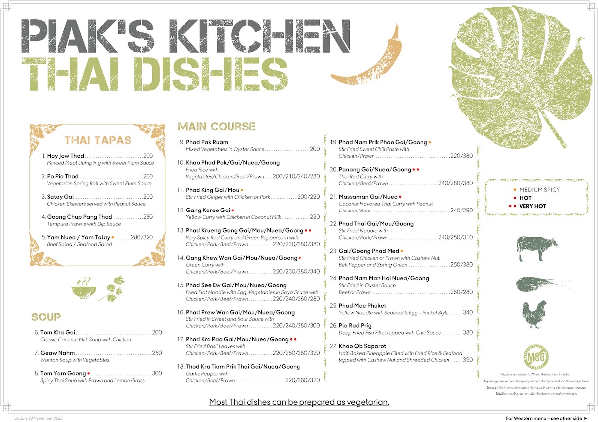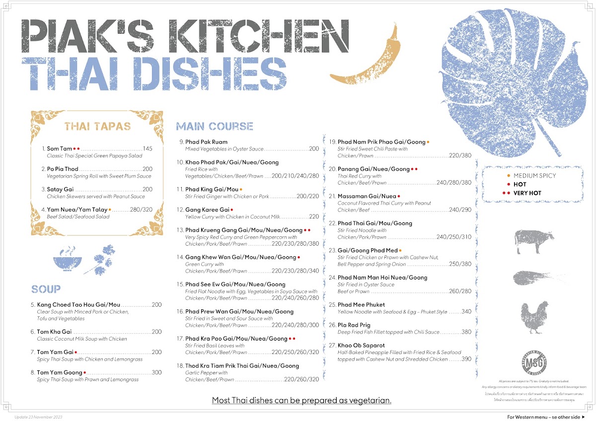 Welcome to Piak's Kitchen, a culinary gem nestled in Choeng Thale, Phuket. This inviting restaurant offers a feast for the senses with its diverse menu featuring an array of exquisite Thai dishes alongside quality European options. Guests have raved about the flavorful Thai cuisine, making it a must-try experience during your visit. The warm and attentive service, highlighted by the exceptional staff members like Jack and Pang, ensures that each meal is served with a smile, creating an atmosphere of genuine hospitality.